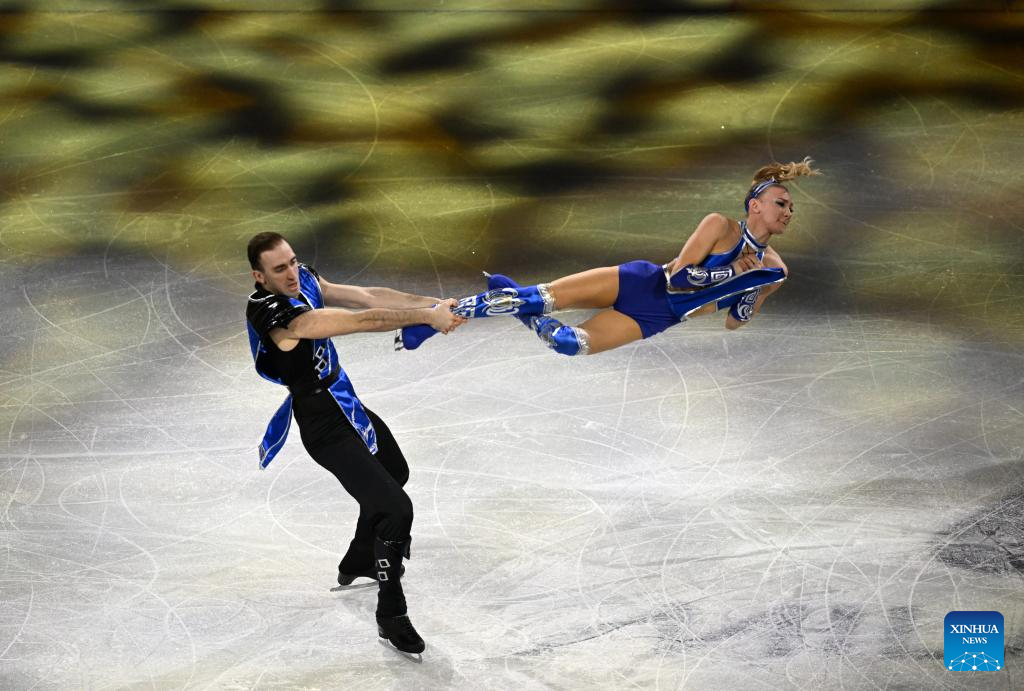 Anastasiia Metelkina (R)/Luka Berulava of Georgia perform during the gala exhibition of figure skating at the Milan-Cortina 2026 Olympic Winter Games in Milan, Italy, Feb. 21, 2026. [Photo/Xinhua]