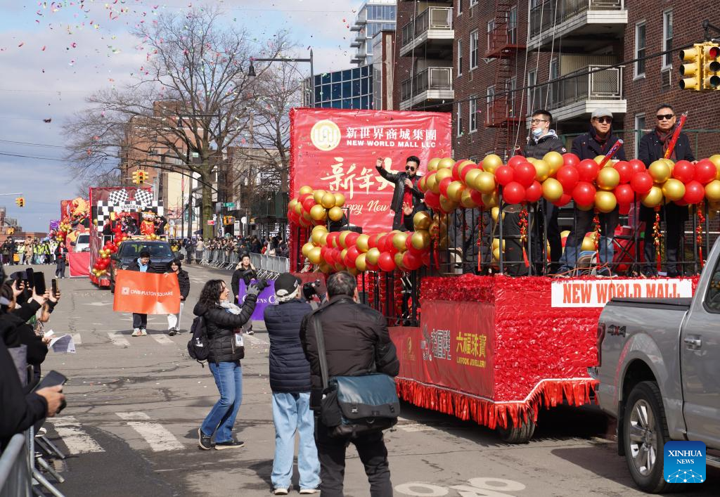 People attend a Chinese New Year parade in New York, the United States, Feb. 21, 2026. A parade was held here to celebrate the Chinese New Year on Saturday. [Photo/Xinhua]