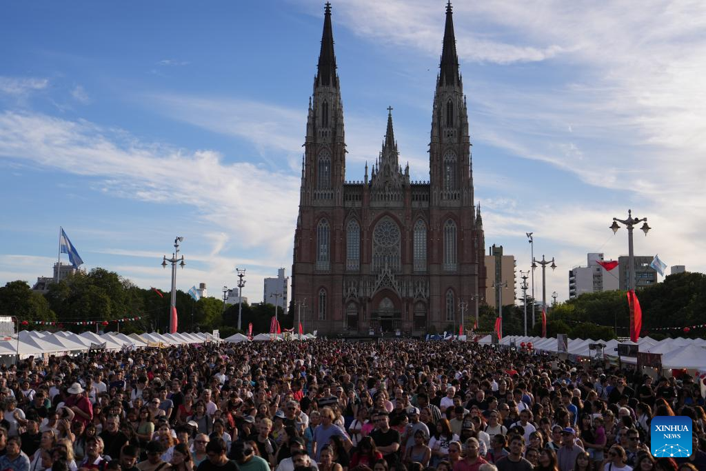 Visitors attend a Chinese New Year celebration event in La Plata, Buenos Aires, Argentina, Feb. 21, 2026. A series of activities to celebrate the Chinese New Year were held here on Saturday, attracting large numbers of local residents. [Photo/Xinhua]