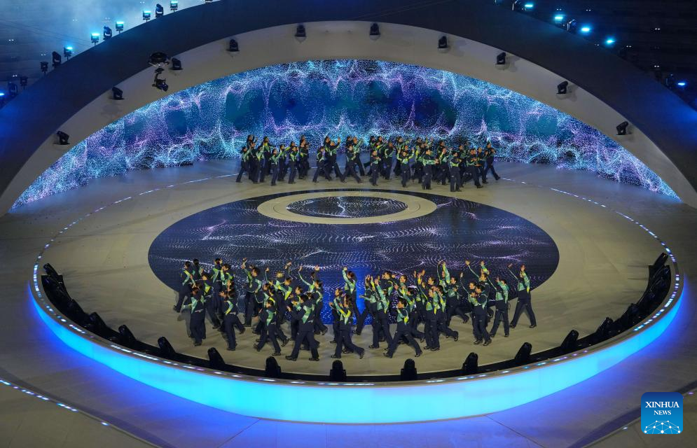 This photo taken on Feb. 22, 2026 shows the closing ceremony of the Milan-Cortina 2026 Olympic Winter Games at Verona Olympic Arena in Verona, Italy. (Xinhua/Xue Yuge)
