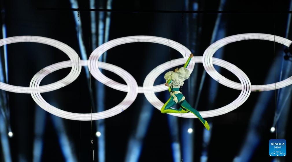An actor performs during the closing ceremony of the Milan-Cortina 2026 Olympic Winter Games at Verona Olympic Arena in Verona, Italy, Feb. 22, 2026. (Xinhua/Xue Yuge)