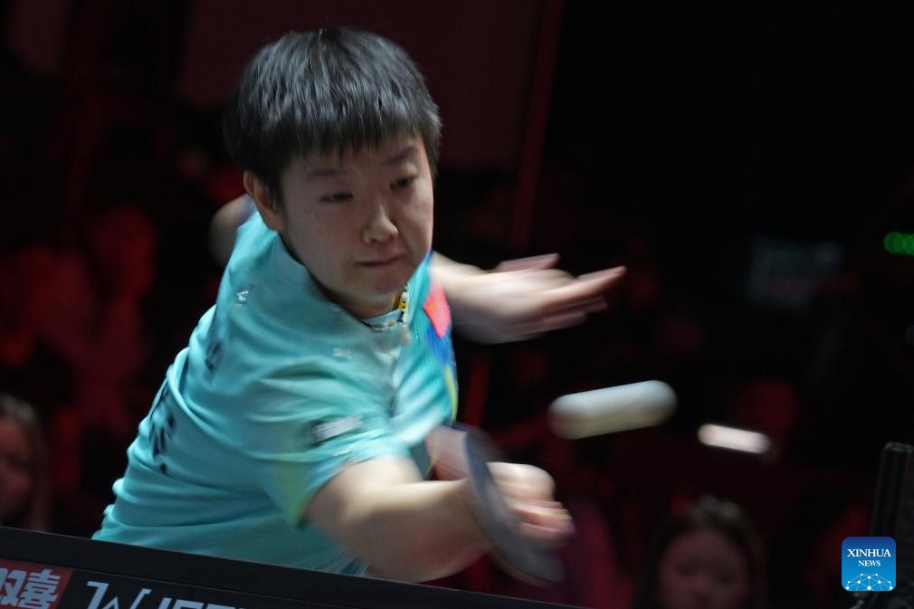 Sun Yingsha of China hits a return during the women's singles round of 32 match between Sun Yingsha of China and Elizabeta Samara of Romania at the World Table Tennis (WTT) Singapore Smash 2026 in Singapore on Feb. 25, 2026. (Photo by Then Chih Wey/Xinhua)