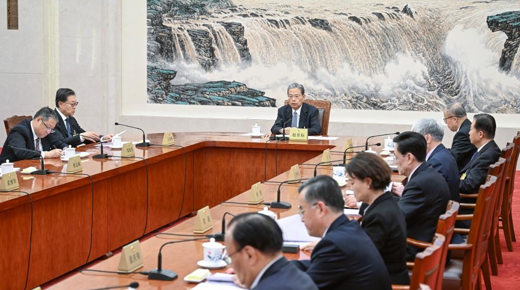Zhao Leji, chairman of the National People's Congress (NPC) Standing Committee, presides over a meeting of the Council of Chairpersons of the NPC Standing Committee at the Great Hall of the People in Beijing, capital of China, Feb. 25, 2026. [Photo/Xinhua]