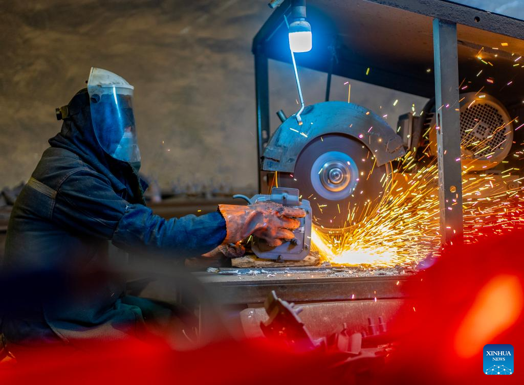 A worker conducts cutting operation at a production workshop in Xinghua, east China's Jiangsu province, Feb. 25, 2026. As production resumes after the Spring Festival holiday, factories and enterprises across the country are operating at full steam to meet orders and ramp up output. (Photo by Zhou Shegen/Xinhua)