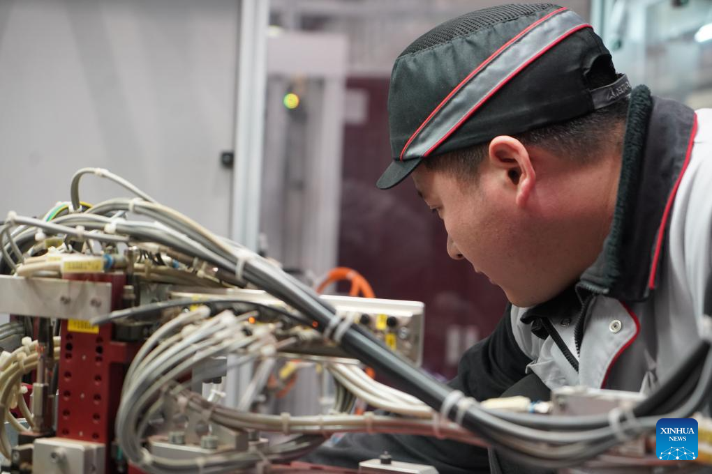 A worker operates at a workshop of Brose automotive technology enterprise management company in Taicang, east China's Jiangsu Province, Feb. 25, 2026. Taicang, with its permanent resident population of less than one million, is a small city on the south bank of Yangtze River estuary. Known as the "hometown of German enterprises" in China, Taicang has gathered over 560 German-funded enterprises so far since the first German company Kern-Liebers settled here in 1993, with the total investment exceeding six billion U.S. dollars and an annual industrial output value of over 67 billion yuan (about 9.76 billion U.S. dollars). (Photo by Liu Zhenrui/Xinhua)