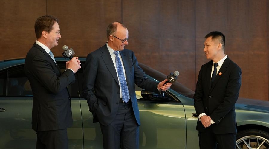 German Chancellor Friedrich Merz took the new Mercedes-Benz S-Class for a test ride in Beijing on Thursday morning, experiencing the intelligent assisted driving system during his official visit to China.
