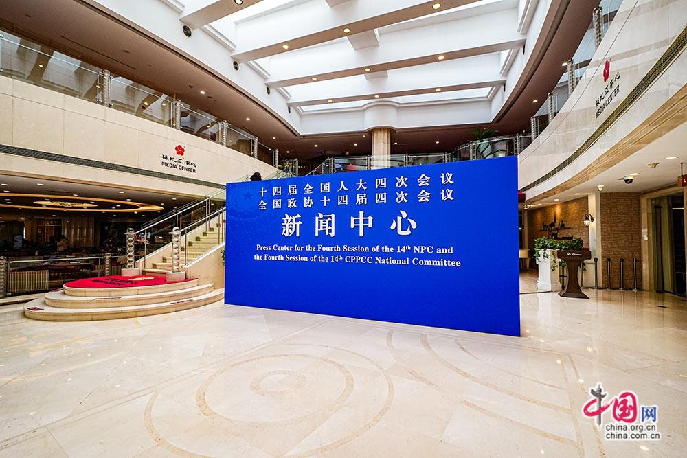 A press center for China's annual sessions of its top legislature and political advisory body, known as the "two sessions," opened on Friday at the Media Center Hotel in Beijing.