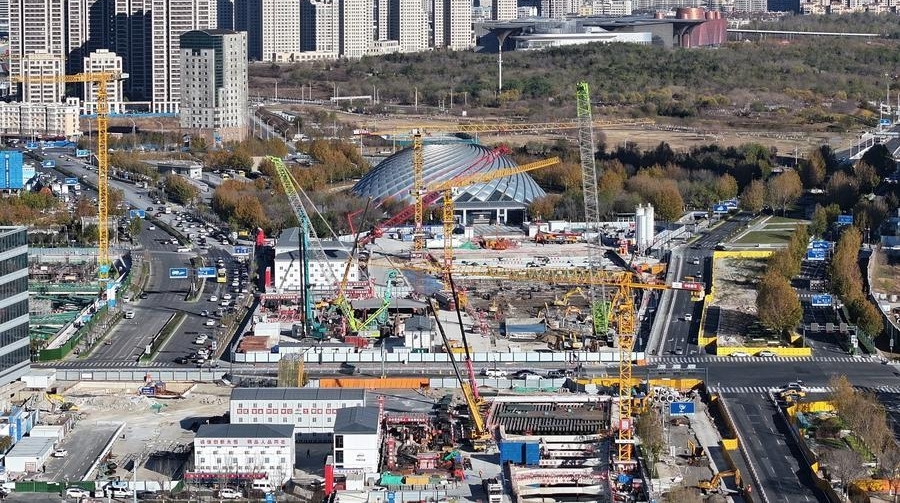 An aerial drone photo taken on Nov. 27, 2025 shows the construction site of Tianjin-Weifang High-Speed Railway in Binhai New Area, north China's Tianjin. [Photo/Xinhua]
