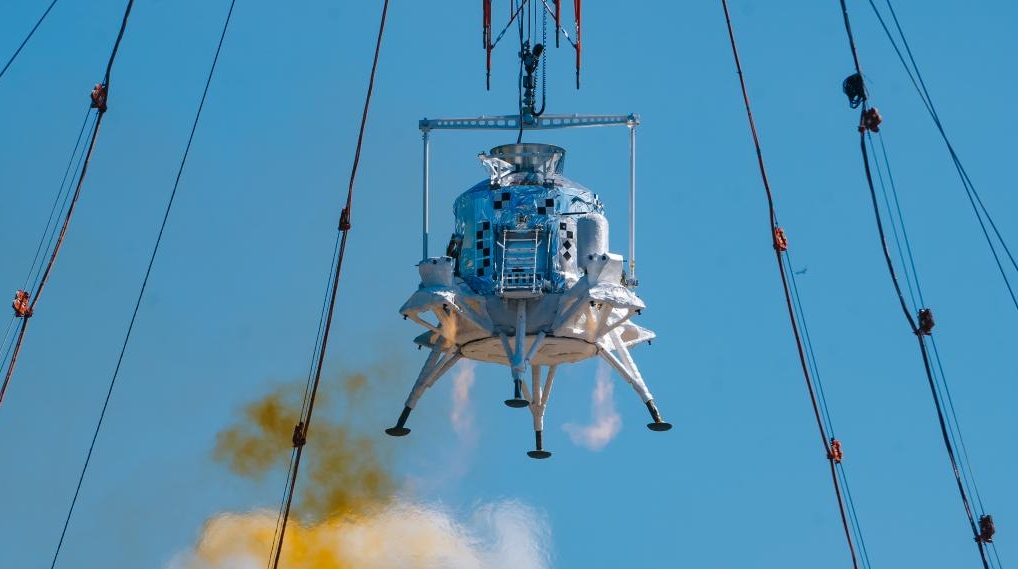 This file photo shows a manned lunar lander during a trial at a test site in Huailai County, north China's Hebei province. [Photo/Xinhua]