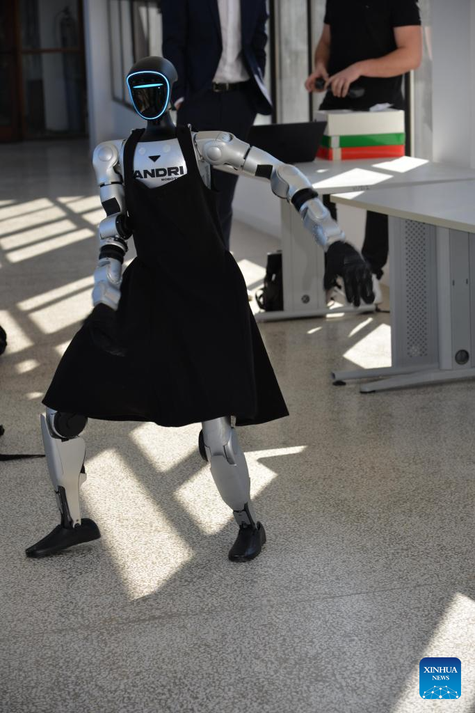 Humanoid robot Tonka demonstrates its movements in Zagreb, Croatia, on Feb. 25, 2026. Humanoid robot Tonka, capable of performing fluid dance routines and Kung Fu-inspired movements, was unveiled on Wednesday at the Rudjer Boskovic Institute during the conference on humanoid robotics. Named Tonka after a popular Croatian female name to reflect local culture, the robot is built on the Unitree G1 platform developed by China's Unitree Robotics. (Xinhua/Ma Zhen)