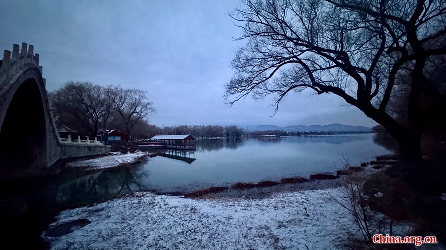 A scenic winter view of the Summer Palace in Beijing, Feb. 27, 2026. Covering an area of 3.09 square kilometers, the Summer Palace is centered around Longevity Hill and Kunming Lake, with water accounting for three-quarters of its total space. Its architectural complex, covering 70,000 square meters, includes numerous palaces, gardens, and traditional-style buildings. [Photo by Jiang Yonggang/China.org.cn]