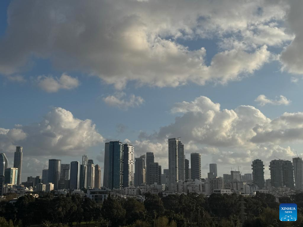 This photo taken by cellphone on Feb. 26, 2026 shows the skyline in Tel Aviv, Israel. U.S. State Department authorized on Friday the departure of non-emergency U.S. government personnel and family members of U.S. government personnel from Mission Israel due to safety risks, U.S. embassy in Jerusalem posted on X. [Xinhua/Chen Junqing]