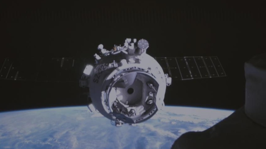 This real-time image captured at the Beijing Aerospace Control Center on Nov. 25, 2025 shows the Shenzhou-22 spaceship docking with the space station combination. [Xinhua/Wang Chuntao]