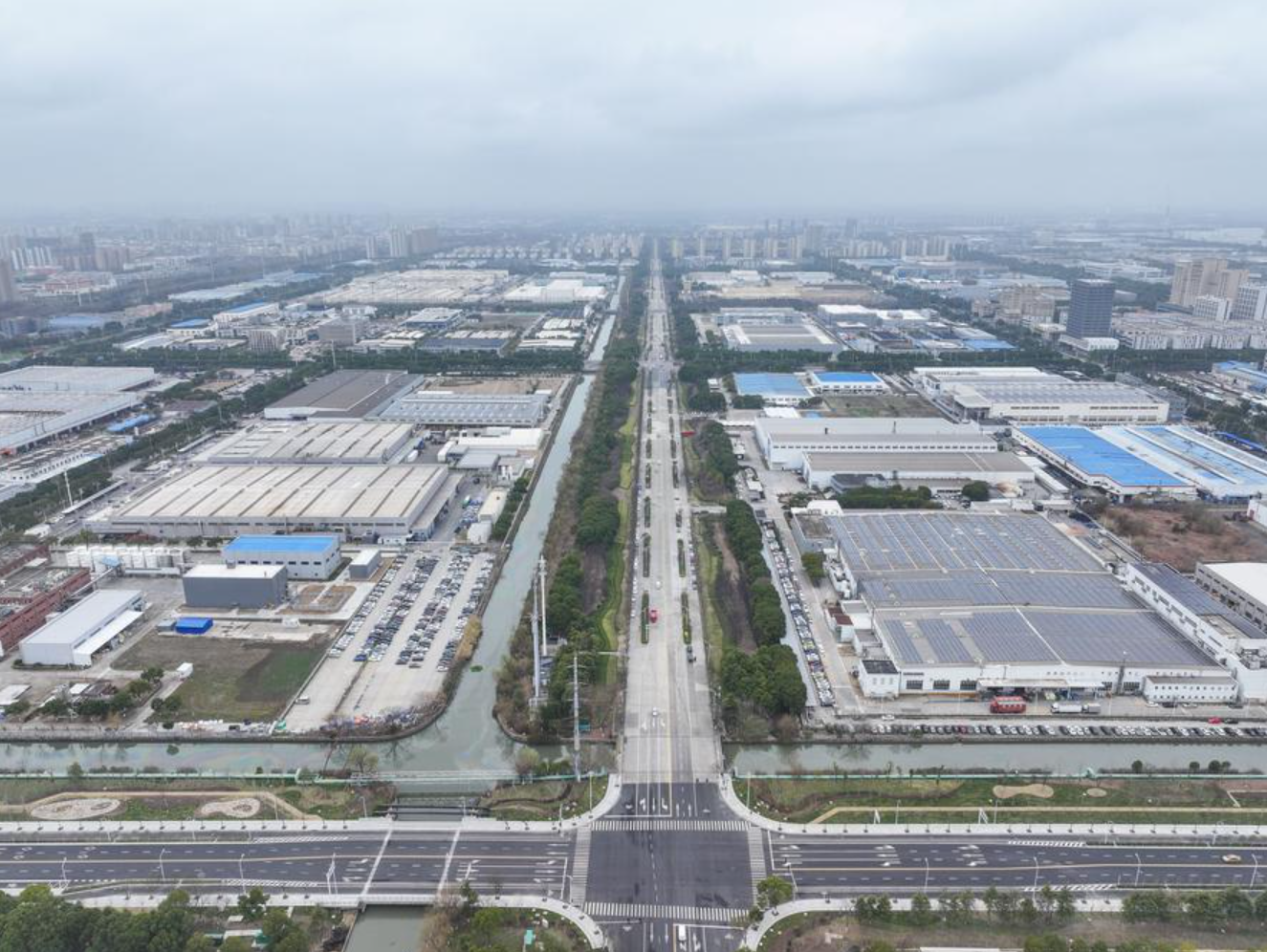 An aerial drone photo taken on Feb. 25, 2026 shows a view of the German enterprise cluster area in Taicang, east China's Jiangsu Province. (Xinhua/Ji Chunpeng)