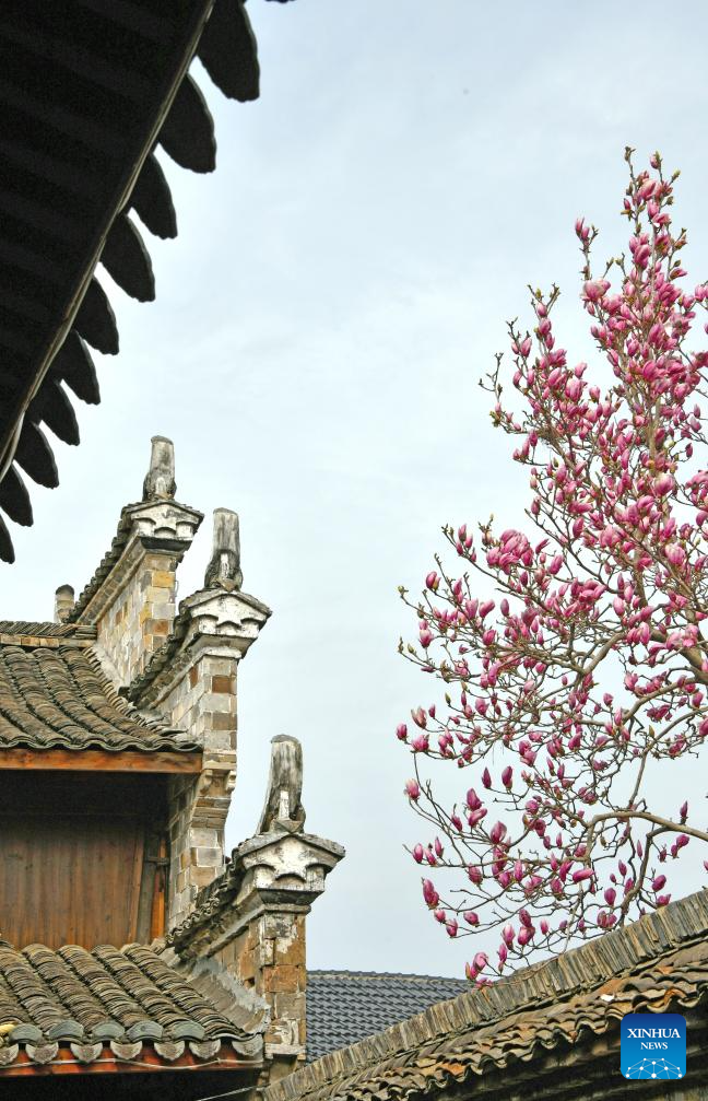 This photo taken on Feb. 26, 2026 shows magnolia flowers in Xianju County of Taizhou, east China's Zhejiang province. (Photo by Wang Huabin/Xinhua)