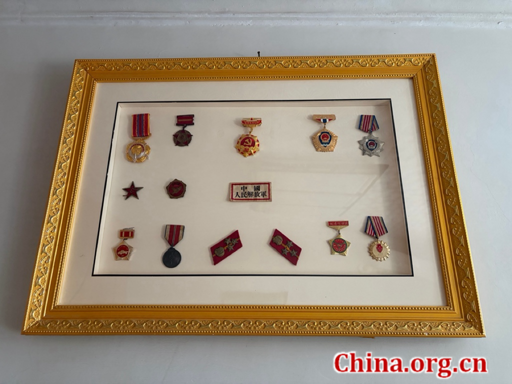 Photo taken Feb. 17, 2026, shows a display case of Yu Zelun's military medals and commemorative badges from his service and later life. [Photo by Yang Chuanli/China.org.cn]