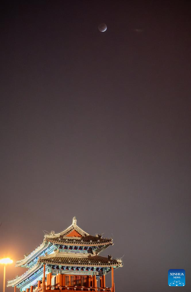 The moon is seen during a total lunar eclipse over Yongdingmen Gate in Beijing, capital of China, March 3, 2026. Tuesday marked the Lantern Festival, which falls on the 15th day of the first month of the Chinese lunar calendar. This year's festival coincided with a total lunar eclipse. (Xinhua/Hu Jingwen)