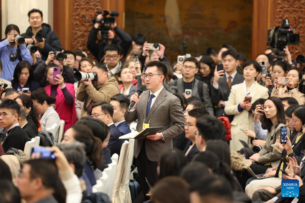 A journalist asks a question at a press conference of the fourth session of the 14th National People's Congress (NPC) at the Great Hall of the People in Beijing, capital of China, March 4, 2026. The NPC, China's national legislature, held a press conference on Wednesday, one day ahead of the opening of its annual session. [Photo/Xinhua]