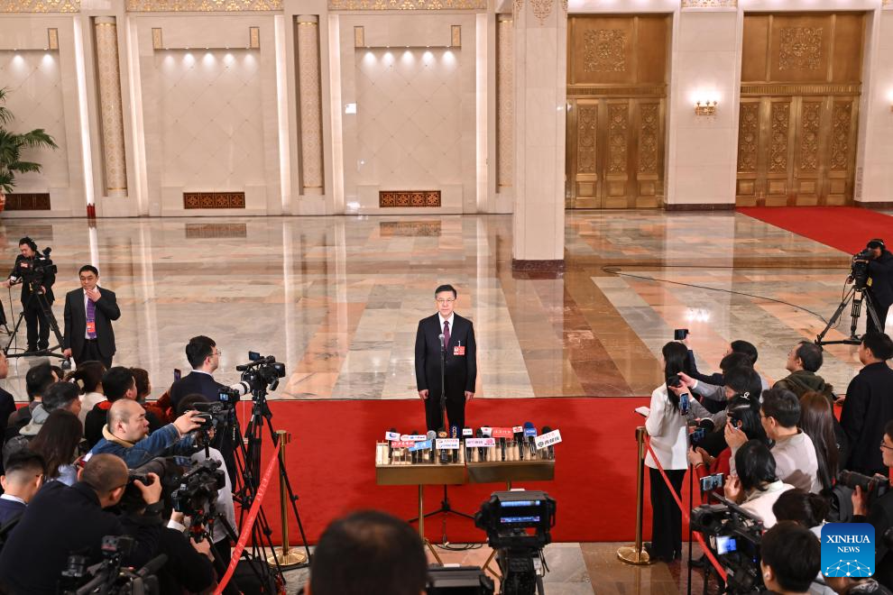 Chinese Minister of Science and Technology Yin Hejun gives an interview after the opening meeting of the fourth session of the 14th National People's Congress (NPC) at the Great Hall of the People in Beijing, capital of China, March 5, 2026. (Xinhua/Li Xin)