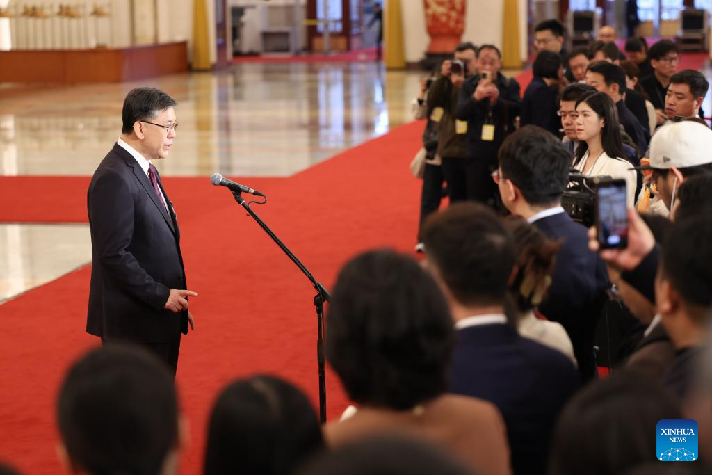 Chinese Minister of Science and Technology Yin Hejun gives an interview after the opening meeting of the fourth session of the 14th National People's Congress (NPC) at the Great Hall of the People in Beijing, capital of China, March 5, 2026. (Xinhua/Jin Liwang)