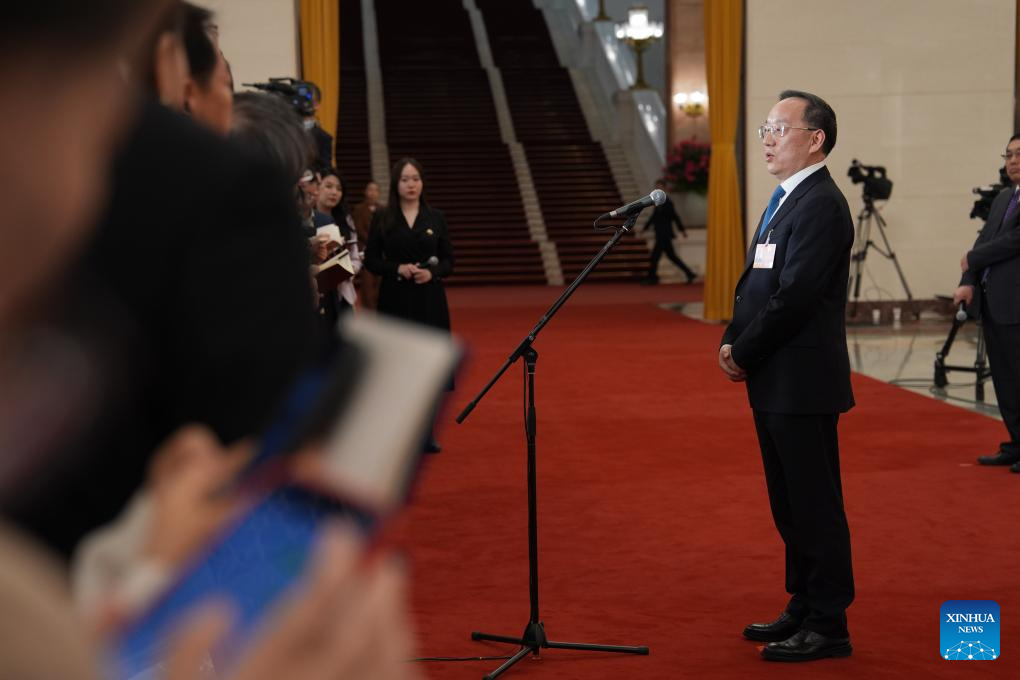 Chinese Minister of Industry and Information Technology Li Lecheng gives an interview after the opening meeting of the fourth session of the 14th National People's Congress (NPC) at the Great Hall of the People in Beijing, capital of China, March 5, 2026. (Xinhua/Wang Xi)