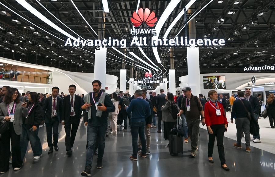 People visit the booth of Huawei during the 2026 Mobile World Congress (MWC) in Barcelona, Spain, March 2, 2026. [Photo/Xinhua]