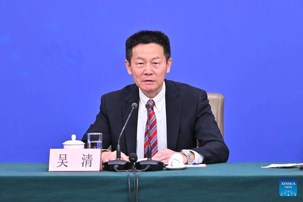 Wu Qing, chairman of the China Securities Regulatory Commission, attends a press conference for the fourth session of the 14th National People's Congress (NPC) on economy in Beijing, capital of China, March 6, 2026. (Xinhua/Li Xin)