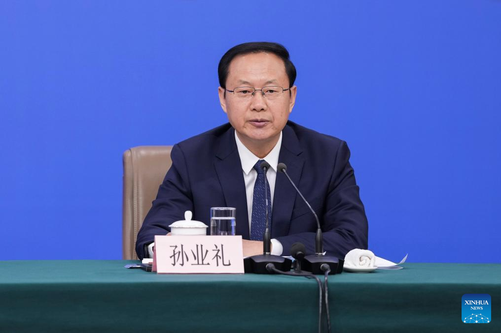 Sun Yeli, minister of culture and tourism, attends a press conference for the fourth session of the 14th National People's Congress (NPC) on people's livelihood in Beijing, capital of China, March 7, 2026. (Xinhua/Wang Xi)