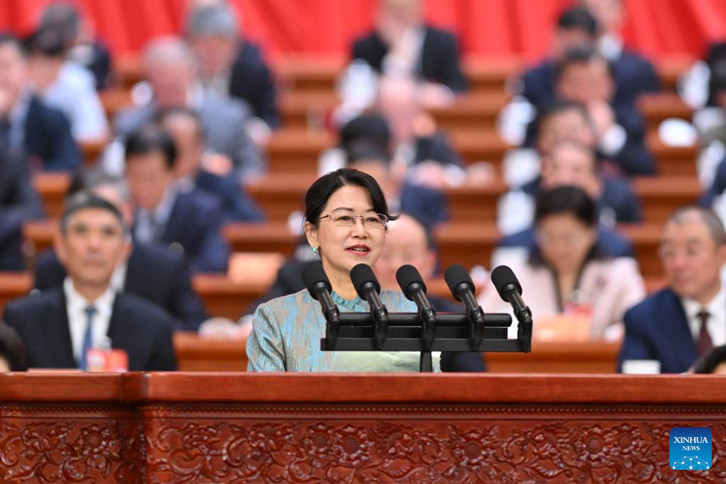 He Dan, a member of the 14th National Committee of the Chinese People's Political Consultative Conference (CPPCC), speaks at the second plenary meeting of the fourth session of the 14th CPPCC National Committee at the Great Hall of the People in Beijing, capital of China, March 7, 2026. (Xinhua/Yue Yuewei)