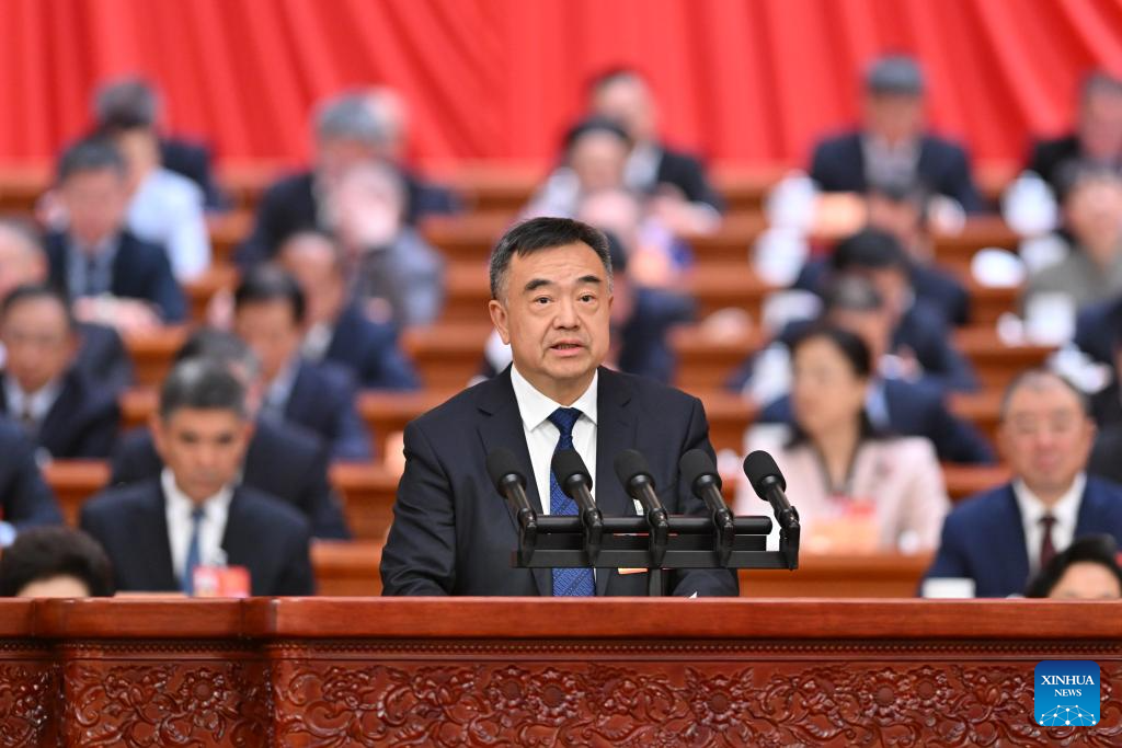 Mo Rong, a member of the 14th National Committee of the Chinese People's Political Consultative Conference (CPPCC), speaks at the second plenary meeting of the fourth session of the 14th CPPCC National Committee at the Great Hall of the People in Beijing, capital of China, March 7, 2026. (Xinhua/Yue Yuewei)