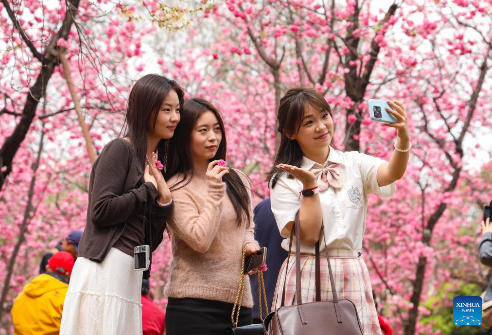 Tourists pose for photos at a zoo in Kunming, southwest China's Yunnan province, March 7, 2026. (Photo by Zheng Yi/Xinhua)