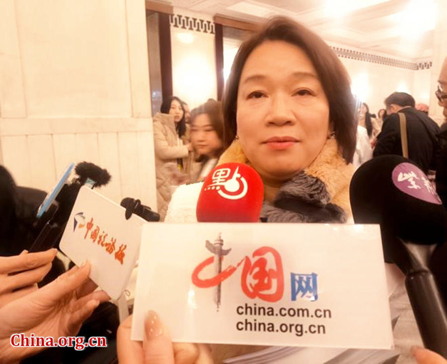 Priscilla Leung Mei-fun, an NPC deputy and member of the HKSAR Legislative Council, speaks with media after the opening of the fourth session of the 14th National People's Congress in Beijing, March 5, 2026. [Photo by Xu Xiaoxuan/China.org.cn]
