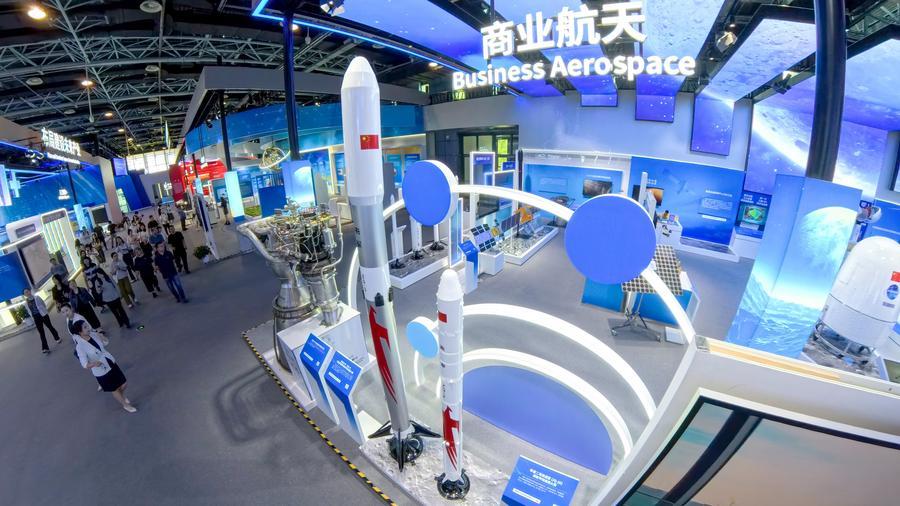 Visitors learn about products of business aerospace enterprises at the Zhongguancun Exhibition Center in Beijing, capital of China, June 20, 2025. (Xinhua/Ju Huanzong)