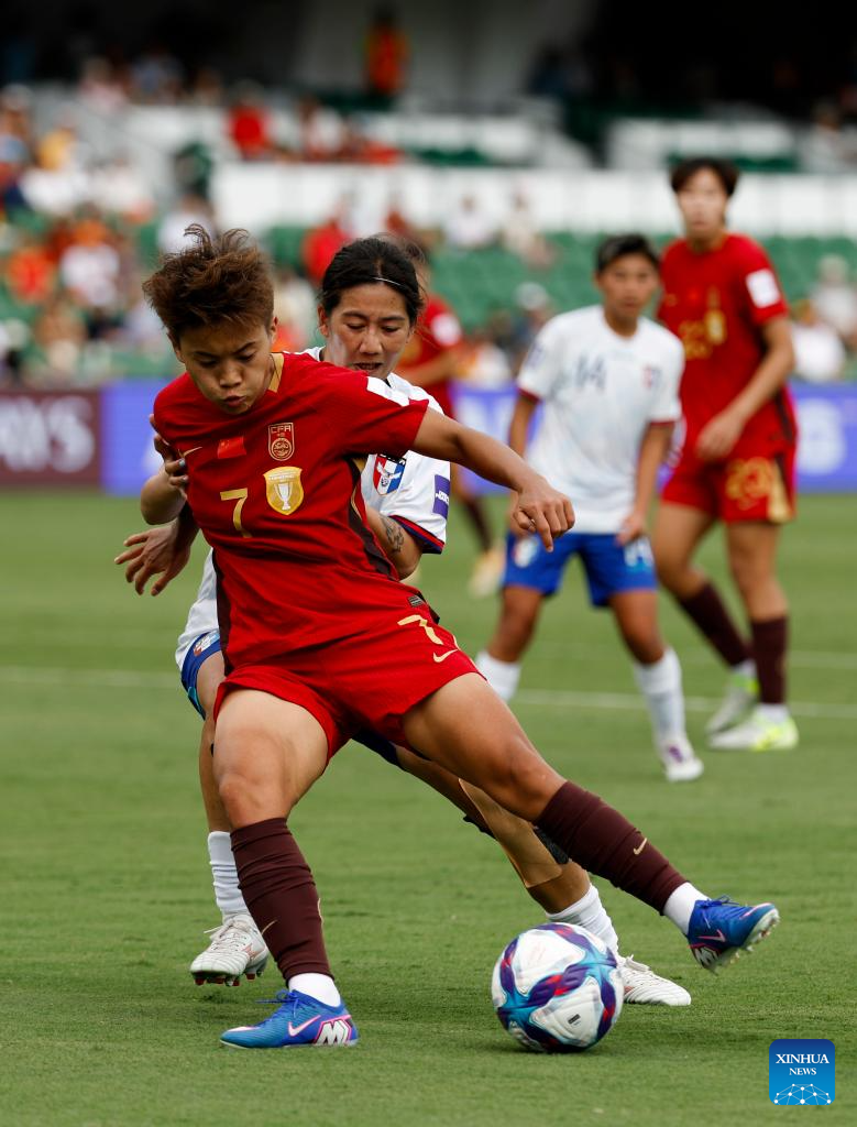 Wang Shuang (front) of China competes during the quarterfinal of Women's Asian Cup between China and Chinese Taipei at Perth Rectangular Stadium in Perth, Australia, March 14, 2026. (Xinhua/Ma Ping)