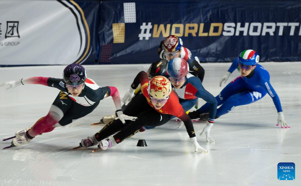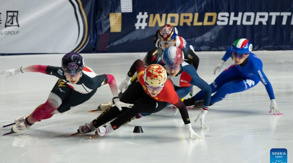 Yang Jingru (2nd L) of China competes during the women's 1500m final B at the ISU Short Track World Championships in Montreal, Canada, March 15, 2026. (Photo by Li Haitao/Xinhua)