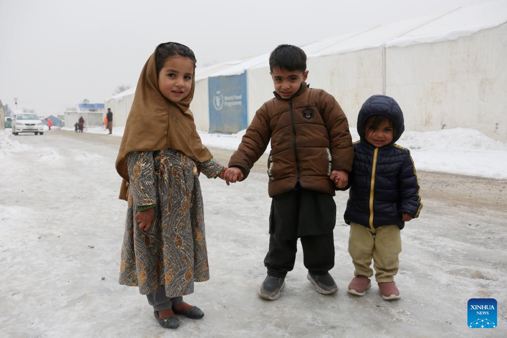 Afghan children are seen at a makeshift camp in Kabul, Afghanistan, Jan. 26, 2026. [Photo/Xinhua]