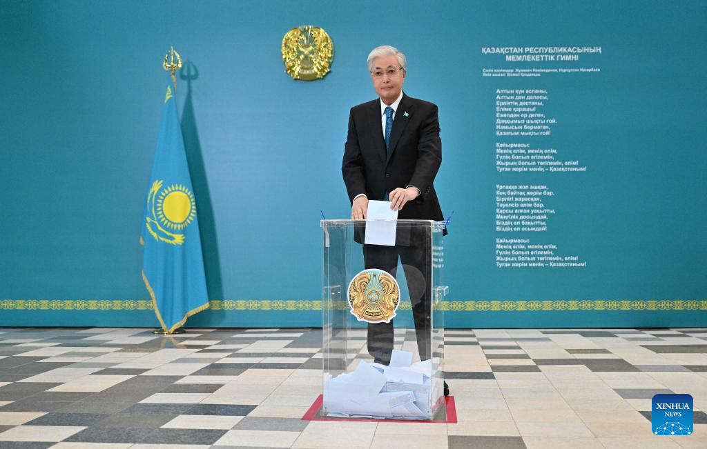 Kazakh President Kassym-Jomart Tokayev casts a ballot at a polling station in Astana, Kazakhstan, March 15, 2026. [Photo/Xinhua]
