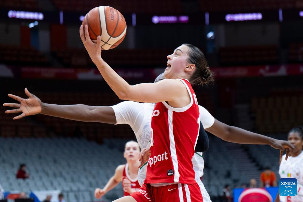 Eliska Hamzova of the Czech Republic goes for a lay-up during the group A match between the Czech Republic and Mali at FIBA Women's World Cup Qualifying Tournaments in Wuhan, central China's Hubei Province, Feb. 12, 2026. (Xinhua/Wu Zhizun)