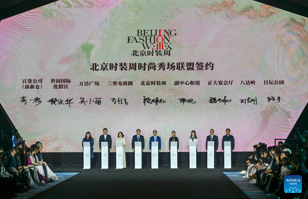 Business representatives sign an agreement during the AW2026 Beijing Fashion Week in Beijing, capital of China, on March 17, 2026. AW2026 Beijing Fashion Week kicked off here on Tuesday and will last till March 23. More than 120 events are scheduled to be held during the fashion week. (Xinhua/Chen Shuo)
