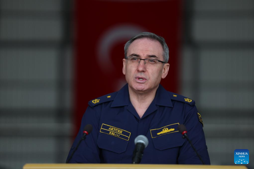 Turkish Defense Ministry Spokesperson Rear Admiral Zeki Akturk speaks at a press briefing in Incirlik Air Base in the southern province of Adana, Türkiye, on March 18, 2026. [Photo/Xinhua]