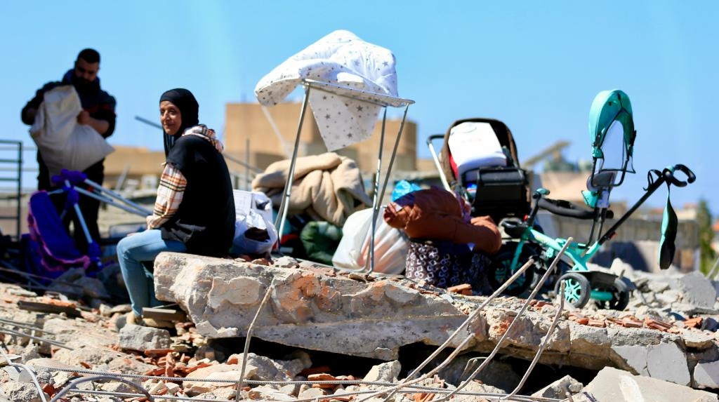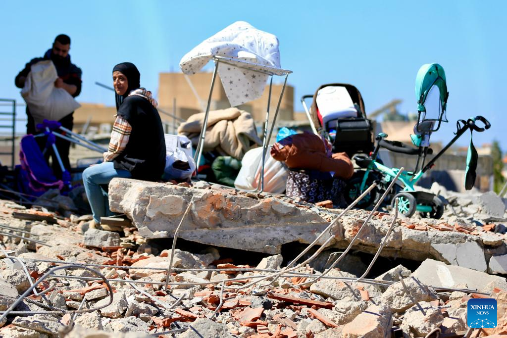 People search for their belongings among the wreckage of a residential building destroyed in Israeli airstrikes near Sidon, southern Lebanon, March 17, 2026. [Photo/Xinhua]