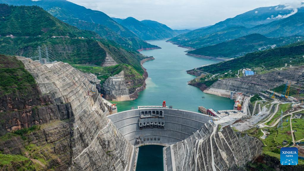 An aerial drone photo taken on June 19, 2024 shows a view of the Baihetan hydropower station in southwest China. [Photo/Xinhua]