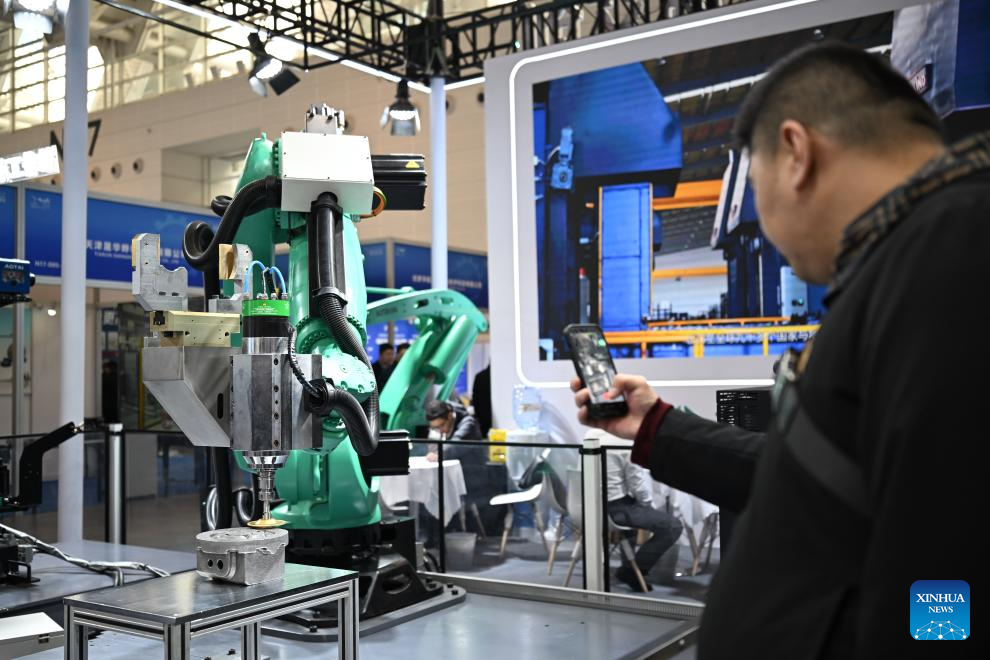 A visitors views a grinding workstation at the 22nd China (Tianjin) International Equipment & Manufacturing Industry Expo (CIEX) in north China's Tianjin, March 18, 2026. (Xinhua/Sun Fanyue)