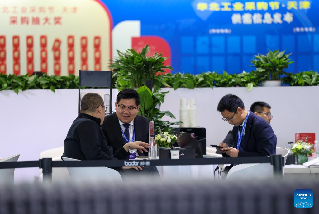 People talk at the 22nd China (Tianjin) International Equipment & Manufacturing Industry Expo (CIEX) in north China's Tianjin, March 18, 2026. (Xinhua/Sun Fanyue)