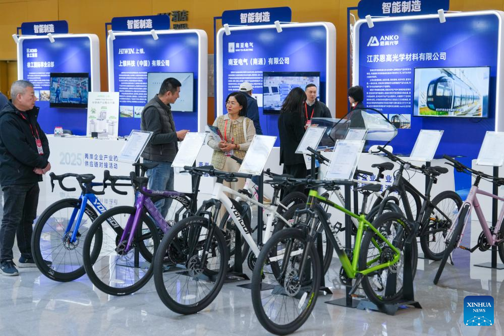 Participants visit an exhibition area of the 2025 annual conference of the Cross-Strait CEO Summit in Nanjing, east China's Jiangsu province, Dec. 16, 2025. [Photo/Xinhua]