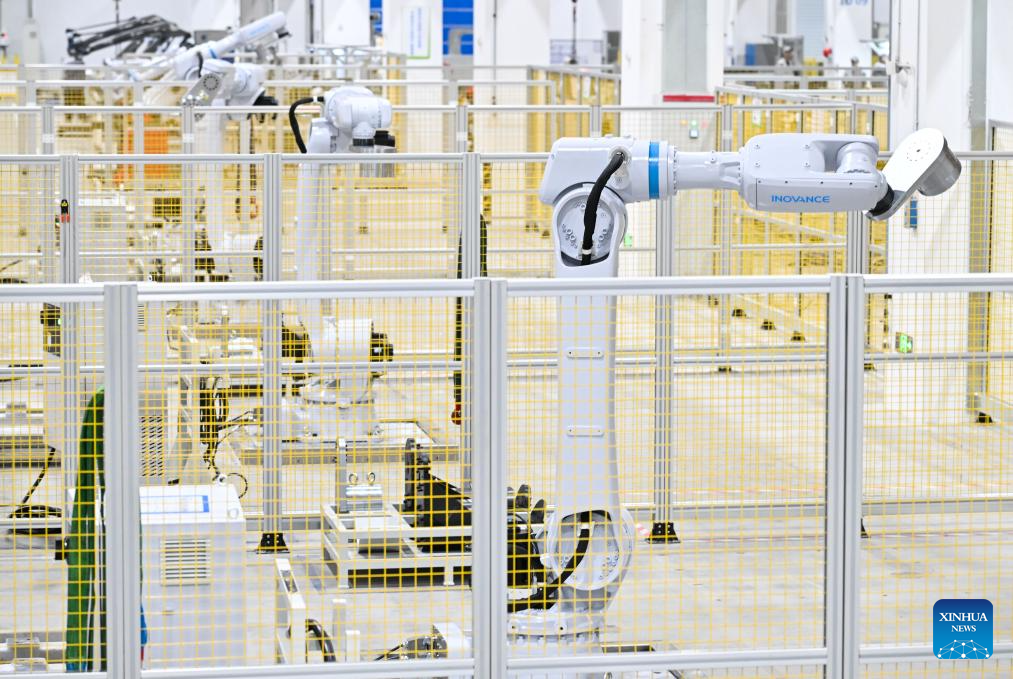Robots are being tested before their delivery in a workshop of Inovance Group in Jiangning District of Nanjing, east China's Jiangsu Province, on March 17, 2026. (Xinhua/Ji Chunpeng)