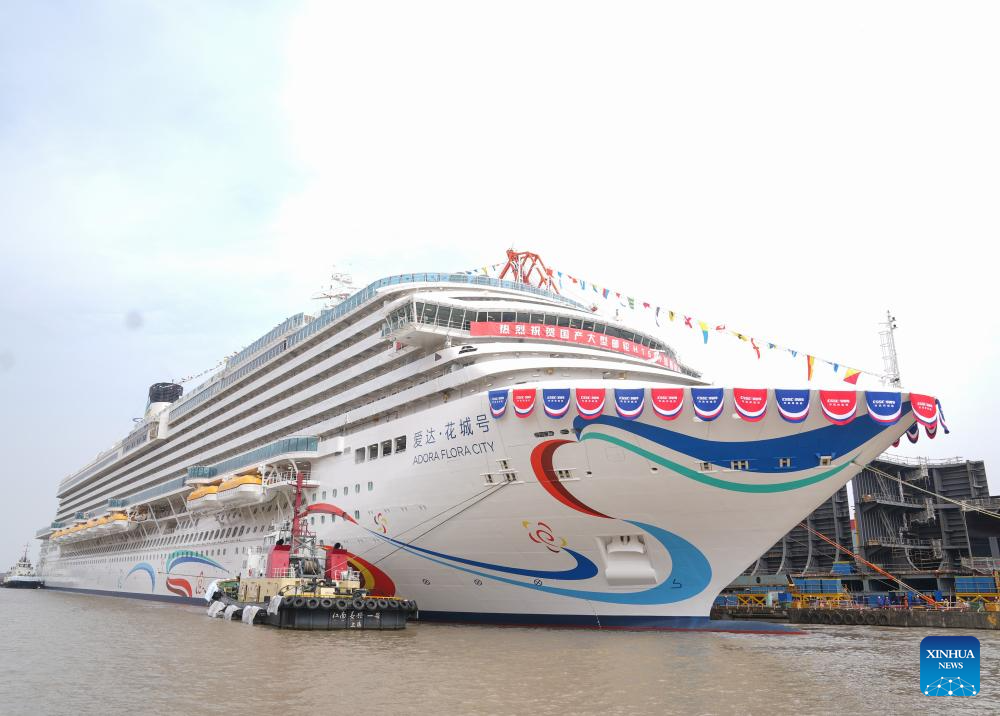 This photo taken on March 20, 2026 shows China's second domestically built large cruise ship "Adora Flora City" in Shanghai, east China. [Photo/Xinhua]