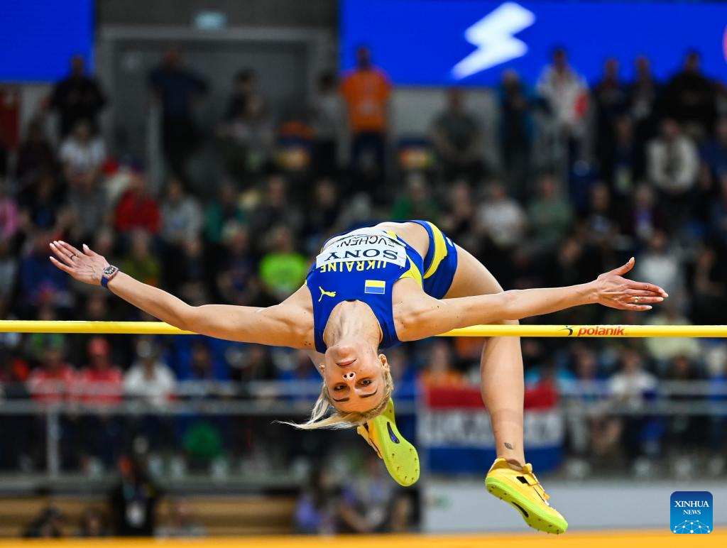 Yuliia Levchenko of Ukraine competes during the women's high jump final at the 2026 World Athletics Indoor Championships in Torun, Poland, March 20, 2026. [Xinhua/Zhang Haofu]