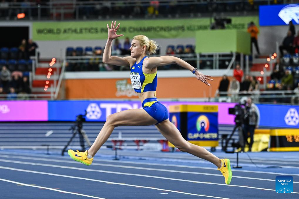 Yuliia Levchenko of Ukraine competes during the women's high jump final at the 2026 World Athletics Indoor Championships in Torun, Poland, March 20, 2026. [Xinhua/Zhang Haofu]