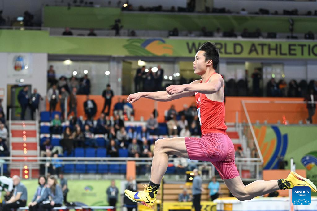 Su Wen of China competes during the men's triple jump final at the 2026 World Athletics Indoor Championships in Torun, Poland, March 20, 2026. [Xinhua/Zhang Haofu]